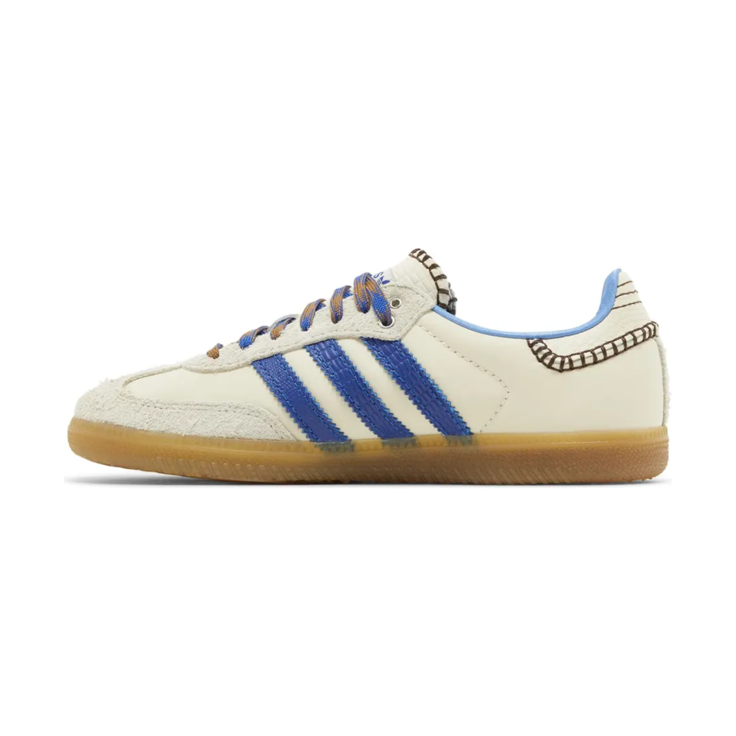 Ideal for both casual and smart-casual ensembles, the adidas Samba Nylon Wales Bonner Wonder Clay Royal adds a distinctive flair to any outfit. Perfect for fashion enthusiasts and sneaker collectors alike, this pair is a standout addition to your footwear collection.