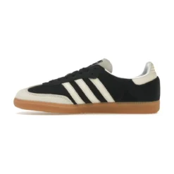 - Signature Design: The adidas three stripes in Wonder White stand out against the black background, creating a striking visual effect. The classic Samba tongue with the golden branding adds a touch of heritage charm.