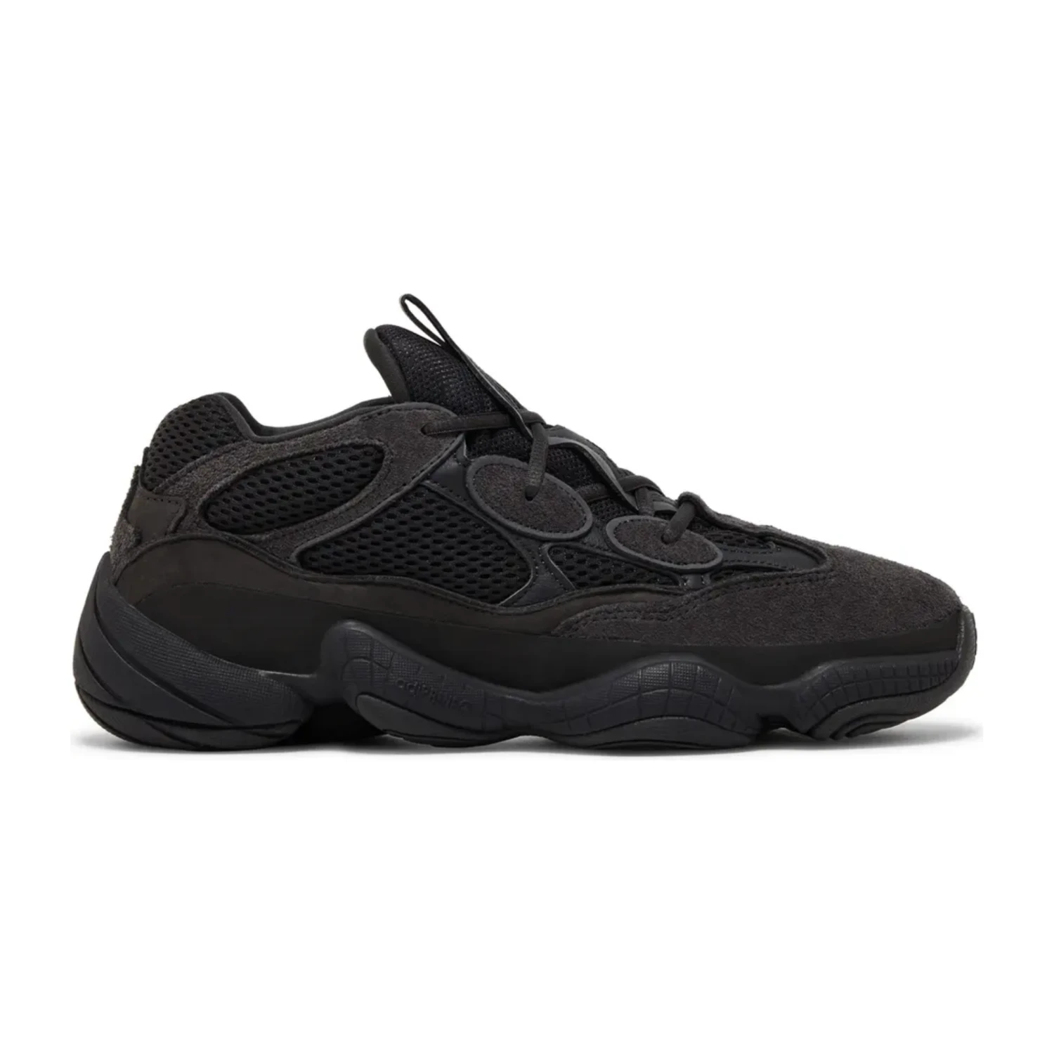 Introducing the Adidas Yeezy 500 Utility Black, a highly sought-after release that showcases the iconic chunky sneaker silhouette in a sleek and sophisticated all-black colorway. Designed with a blackout aesthetic, these sneakers feature matching black materials throughout the upper and sole, creating a monochromatic look that exudes a sense of understated style. The use of different textures, including mesh, leather, and suede, adds depth and dimension to the design, elevating it from a simple all-black sneaker to a truly standout piece.