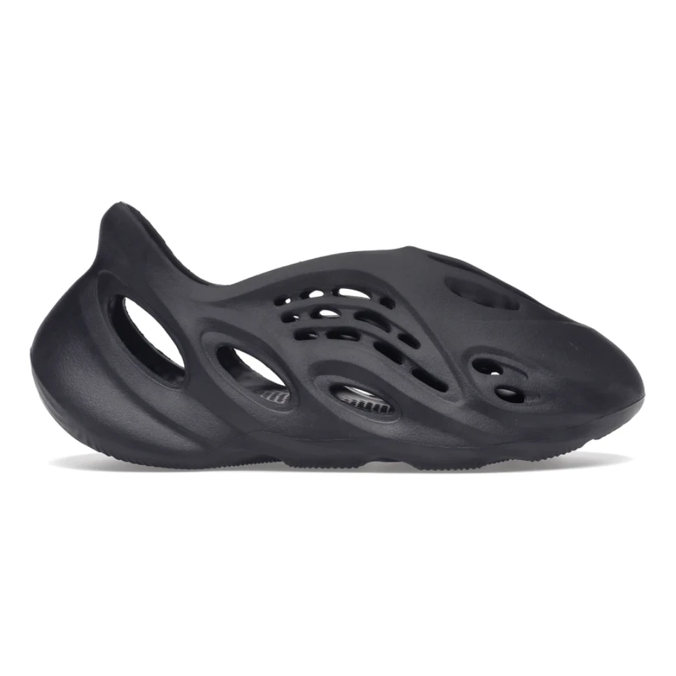 Yeezy’s polarising slip-on comes dressed in a stealthy black finish, resulting in an understated, yet supremely comfortable wear. The entire shoe utilises a one-piece construction and is made from EVA foam designed to sculpt around the foot. Carefully placed vents cut into the design, allowing for breathability and comfort.
