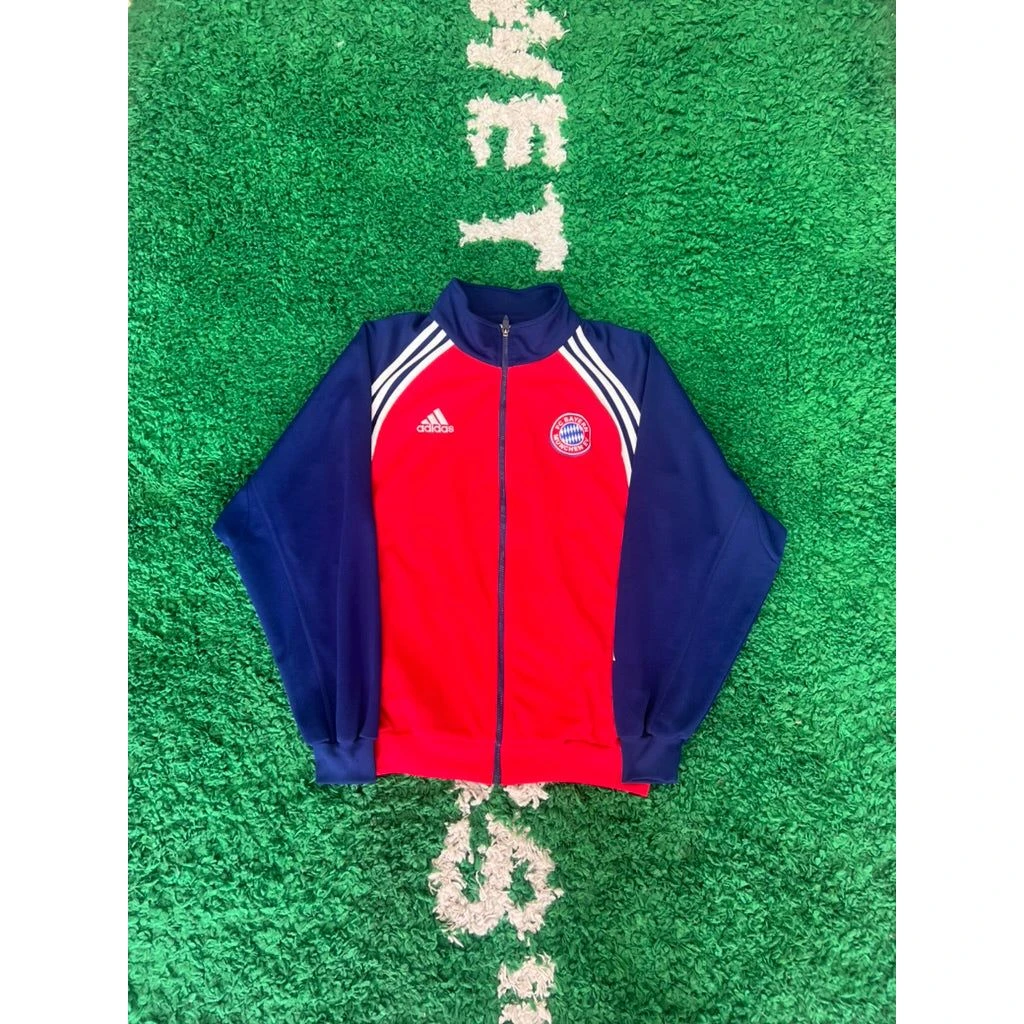 Introducing the highly sought after BAYERN MUNICH 1999/01 Adidas Track Jacket L, a must-have for any avid fan of the legendary football club. This track jacket is a part of the iconic Adidas Originals collection, paying homage to the successful 1999/01 season of Bayern Munich.