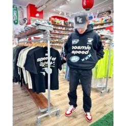 The Broken Planet Cosmic Speed Hoodie is a must-have for any streetwear enthusiast. This hoodie is part of the Broken Planet collection, which is known for its edgy and futuristic designs. The Cosmic Speed Hoodie features a unique and eye-catching print that resembles a broken planet, giving it a bold and avant-garde look.