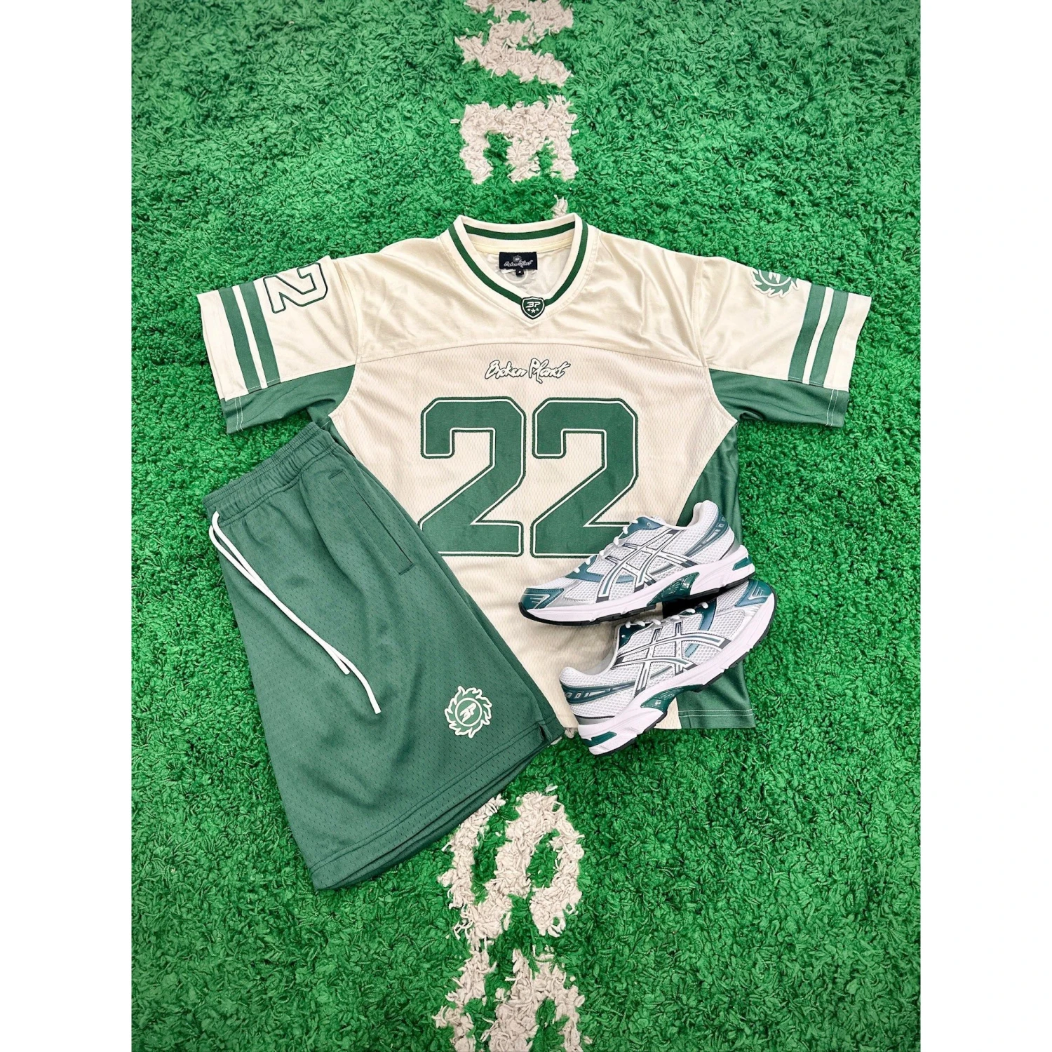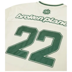 Introducing the Broken Planet Market Football Jersey in a unique green and cream colorway. This jersey is perfect for any football fan looking to make a statement on the field. Made with high-quality materials, this jersey offers both comfort and durability. The green and cream design adds a touch of style to the classic football jersey look. Whether you’re playing in a game or simply showing off your love for the sport, this jersey is a must-have. So why settle for a plain, boring jersey when you can stand out with the Broken Planet Market Football Jersey in green and cream?