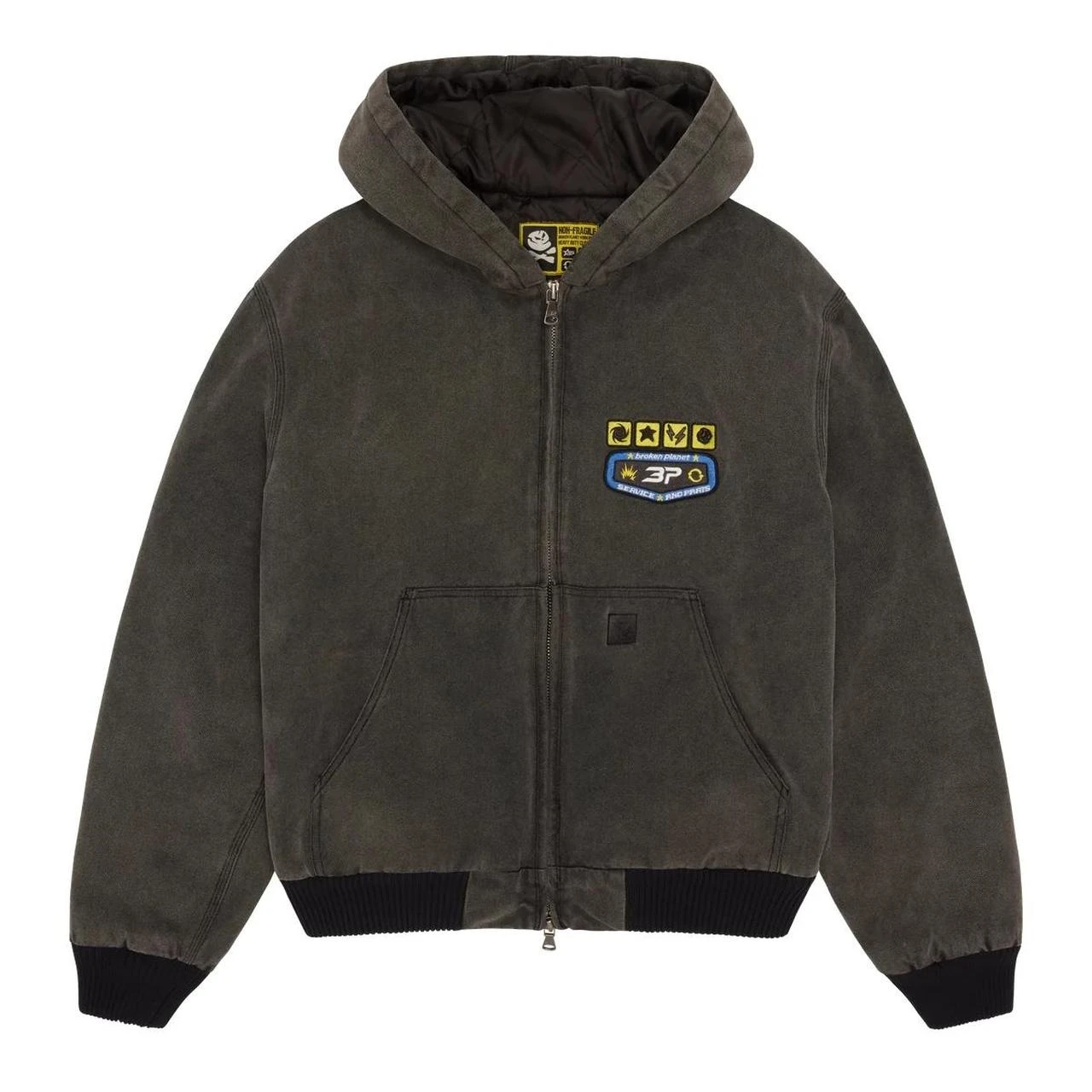 Attention to detail is evident in every stitch of this workwear jacket, from the high-quality materials used to the thoughtful design elements that enhance its functionality and comfort. Whether you’re on the job site, navigating the city streets, or enjoying a weekend adventure, the Broken Planet Market Workwear Jacket in Washed Soot Black is designed to accompany you every step of the way.