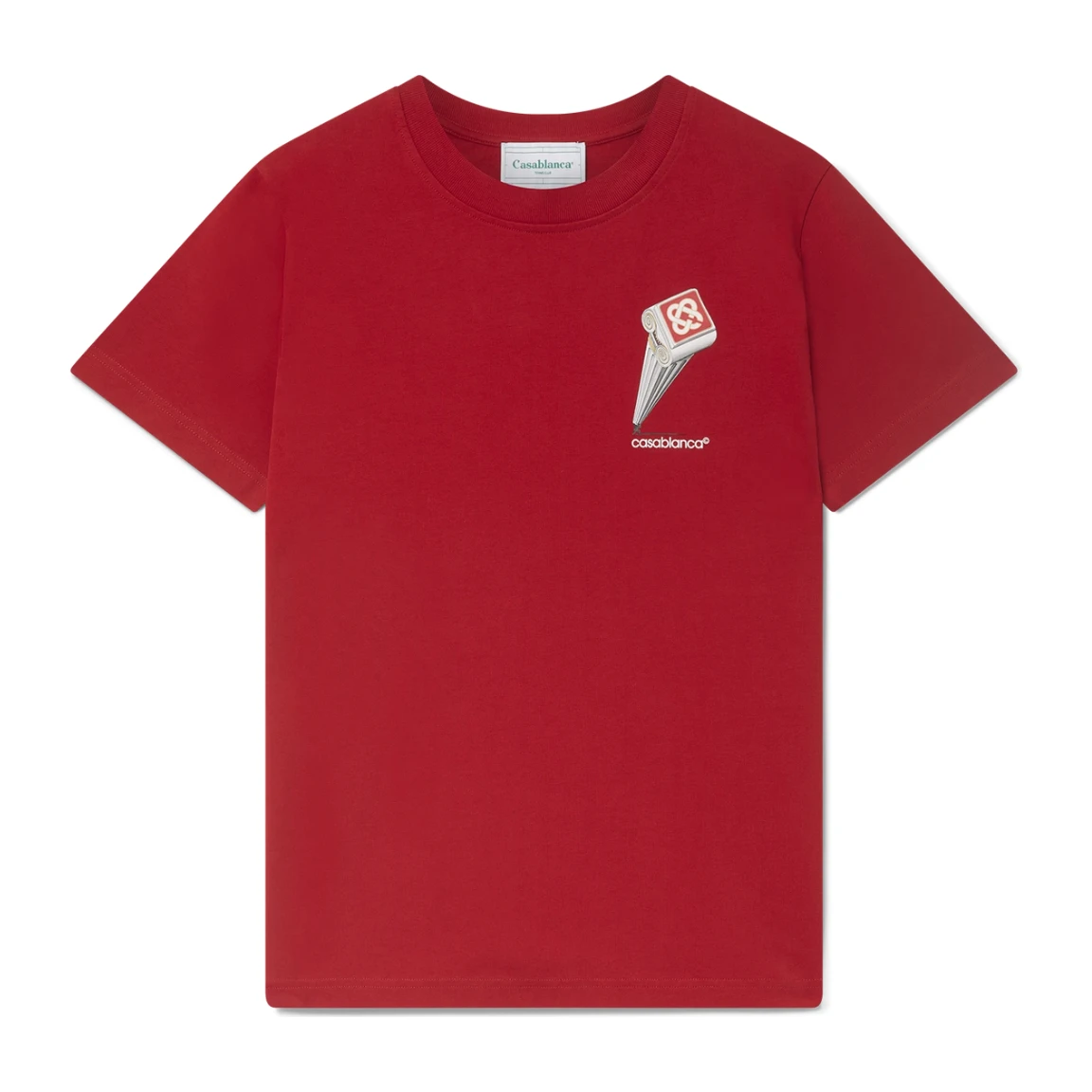 The Casablanca Leaning Column T-Shirt in Red is a short-sleeved piece crafted from 100% organic cotton. It features the brand’s seasonal artwork, inspired by vintage movie posters and ancient Greece, printed on both the front and back. The design is completed with a classic crew neck and offers a true-to-size fit. Made in Portugal, this T-shirt reflects Casablanca’s commitment to quality and artistic expression.