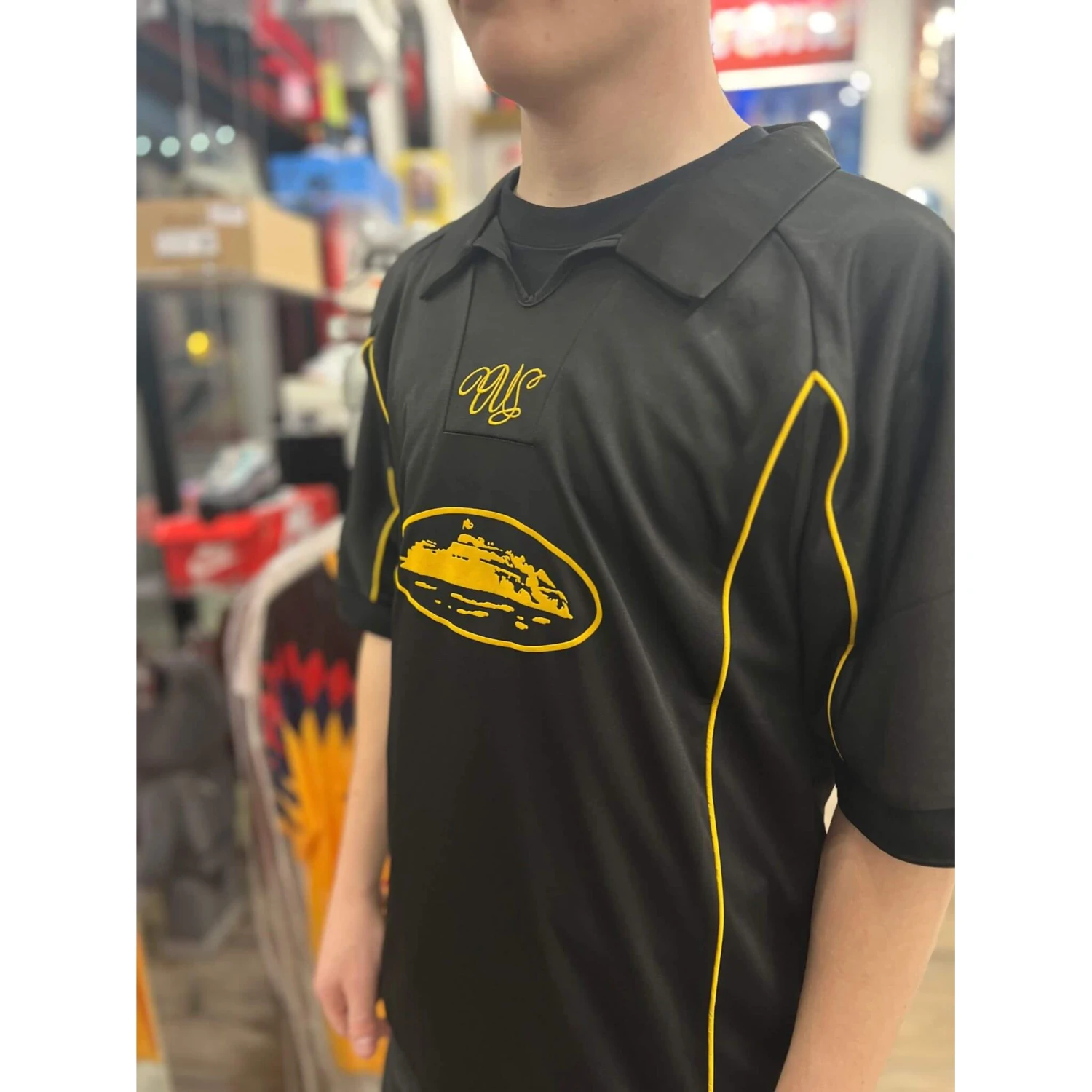 The Corteiz Talismo Football Jersey in Black is a must-have for any football enthusiast. Made with high-quality materials, this jersey offers both style and performance on the field. The sleek black design is complemented by the Corteiz logo on the chest, giving it a modern and sporty look.