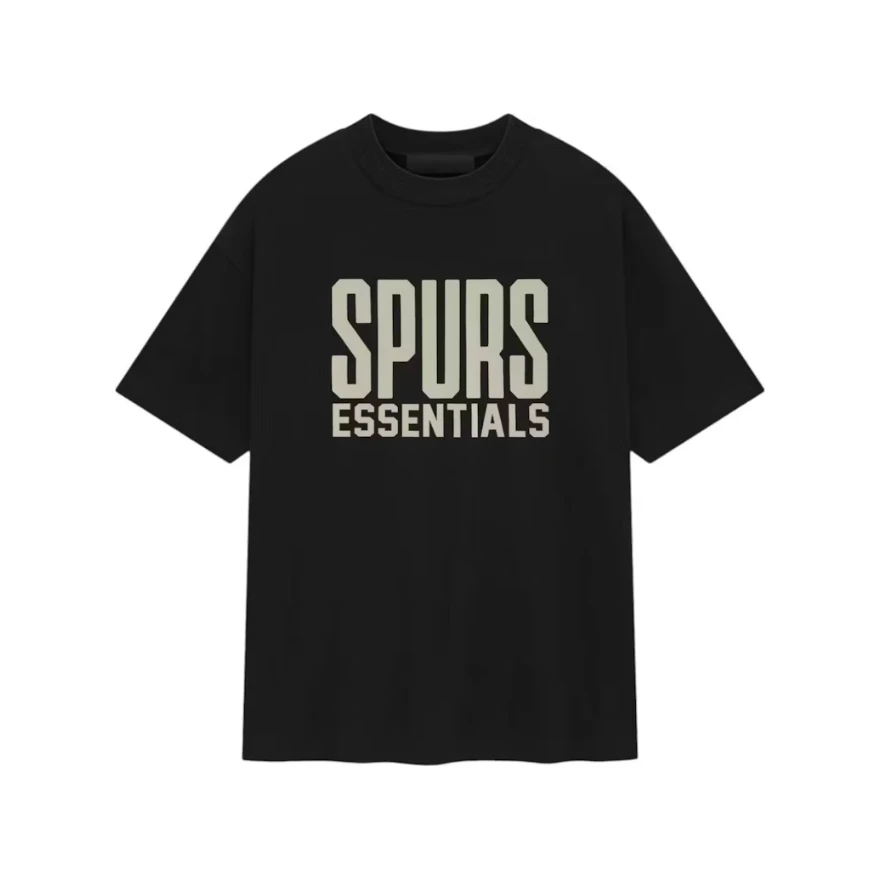 The Fear of God Essentials NBA Spurs Tee in black is part of the Fear of God x NBA collaboration. Featuring a relaxed fit, it is crafted from soft cotton and showcases Spurs branding with subtle Essentials detailing. Released in limited quantities, it was available through select retailers and Fear of God’s official store.