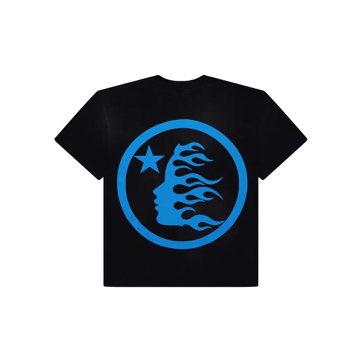 The Hellstar Classic T-Shirt in black and blue features a bold gel-print logo across the chest, adding a unique textured detail to the streetwear staple. Crafted from soft, breathable cotton with a relaxed fit, it combines comfort and standout design for an essential addition to any rotation.