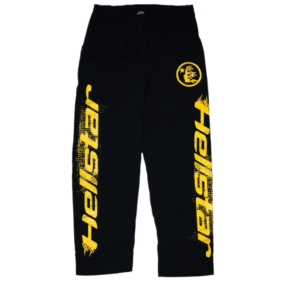 The Hellstar Speed Sweatpants in black and gold bring comfort and street-ready style with bold graphic details down the leg. Made from soft, heavyweight cotton with an adjustable drawstring waistband and cuffed hems, they offer a relaxed fit perfect for casual wear or pairing with the matching Speed Hoodie for a full look.
