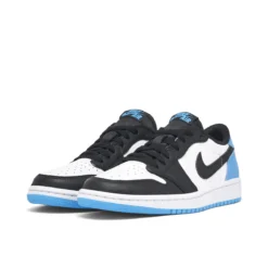 Staying true to the OG high top, this low-top version also features the iconic Wings branding on the heel tab, adding a touch of authenticity to the design. The Nike Air cushion provides supreme comfort, making these sneakers perfect for both on and off the court. Whether you’re a fan of the Jordan brand or simply appreciate a stylish and comfortable shoe, the Jordan 1 Low OG “Black Dark Powder Blue” is a must-have addition to your collection.