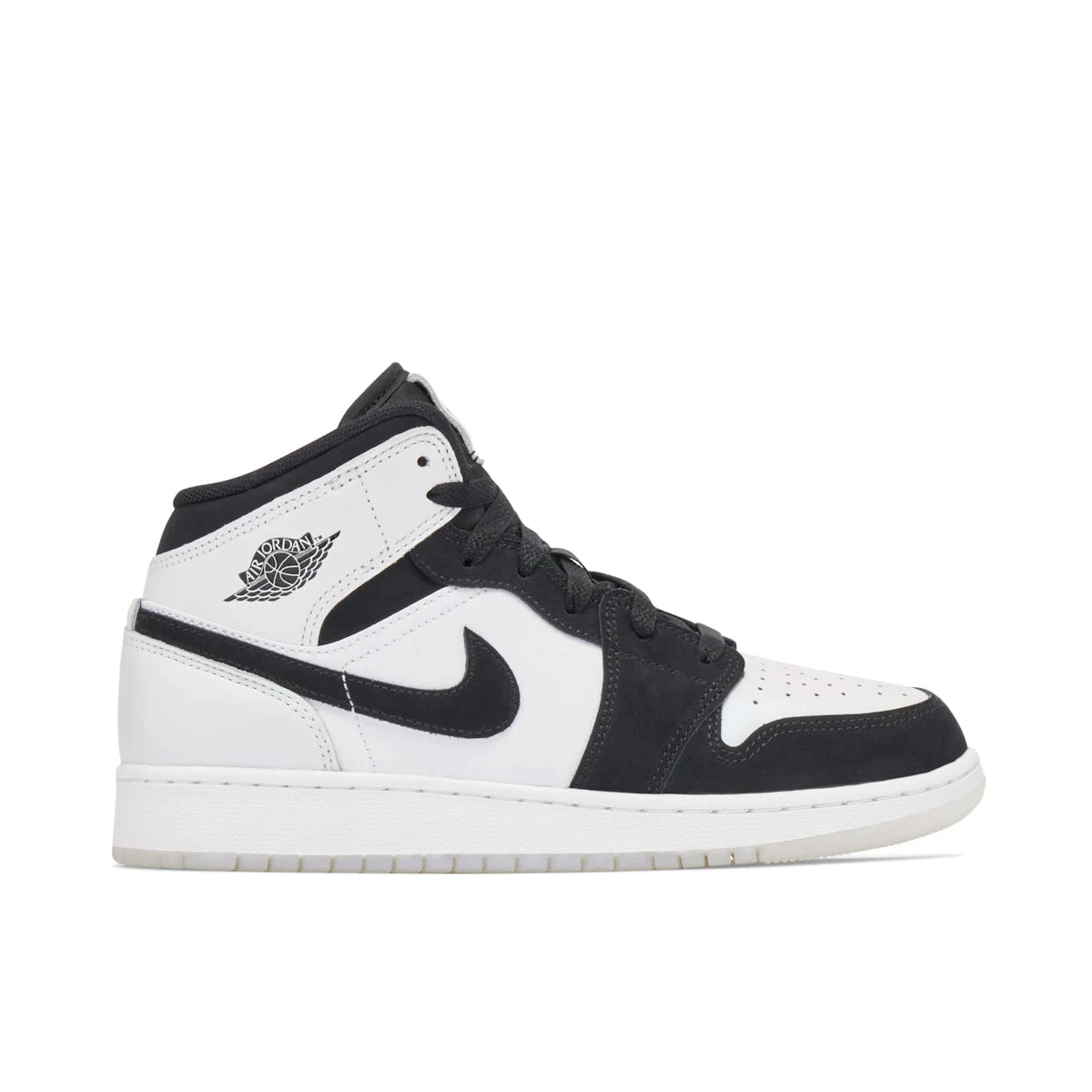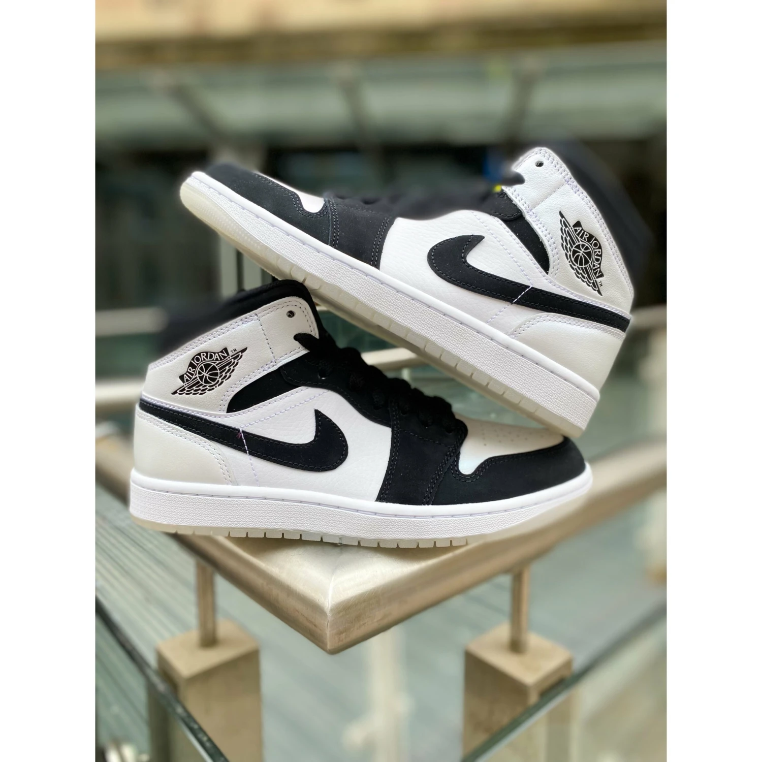 At first glance, they may appear as a standard black and white Jordan 1 Mid, but with this pair, the beauty lies in the details. The heel and ankle collar both don an eye-catching pearlescent finish that dazzles with varying colours depending on the light that hits them