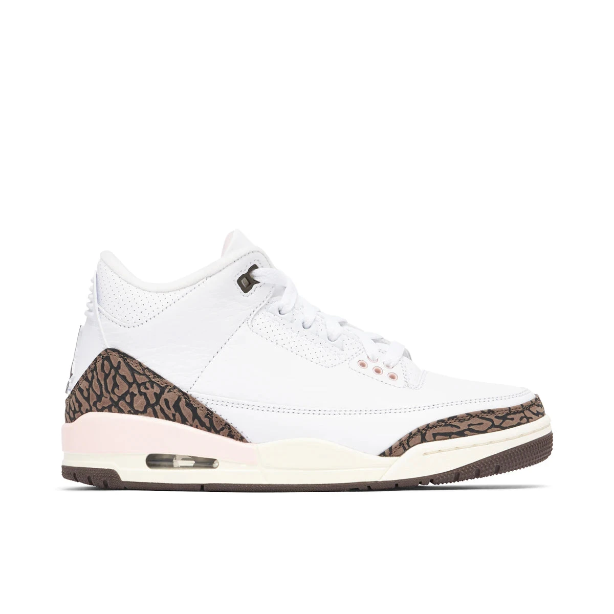 The Jordan 3 Retro Neapolitan Dark Mocha (W) is a highly anticipated release that offers a unique twist on the classic Jordan 3 silhouette. Drawing inspiration from the beloved Italian ice cream, this shoe combines a clean white leather upper with splashes of brown elephant print on the mudguards and heel cups. The result is a visually striking design that pays homage to the iconic “Mocha” Jordan 3 from 2001.