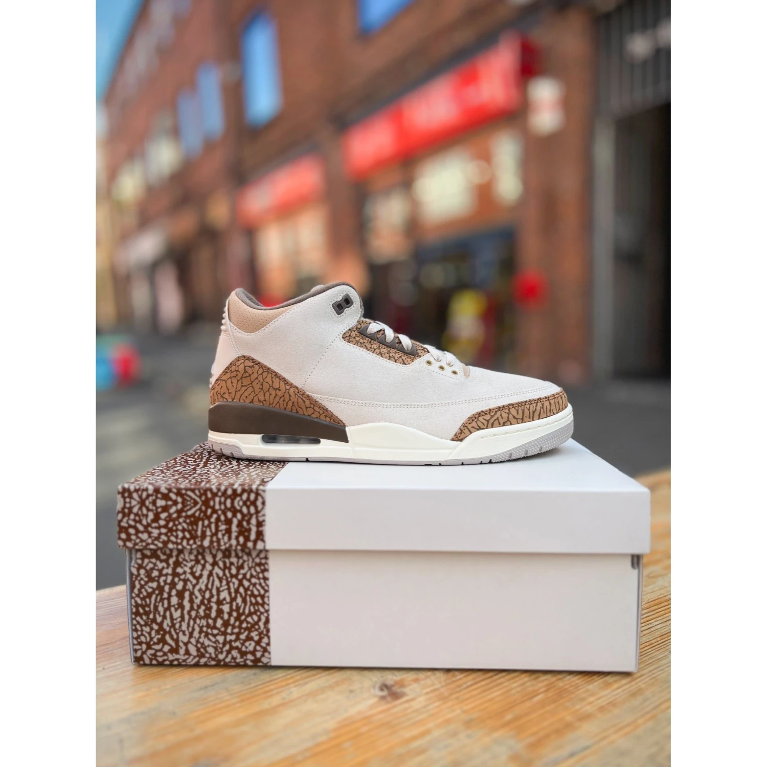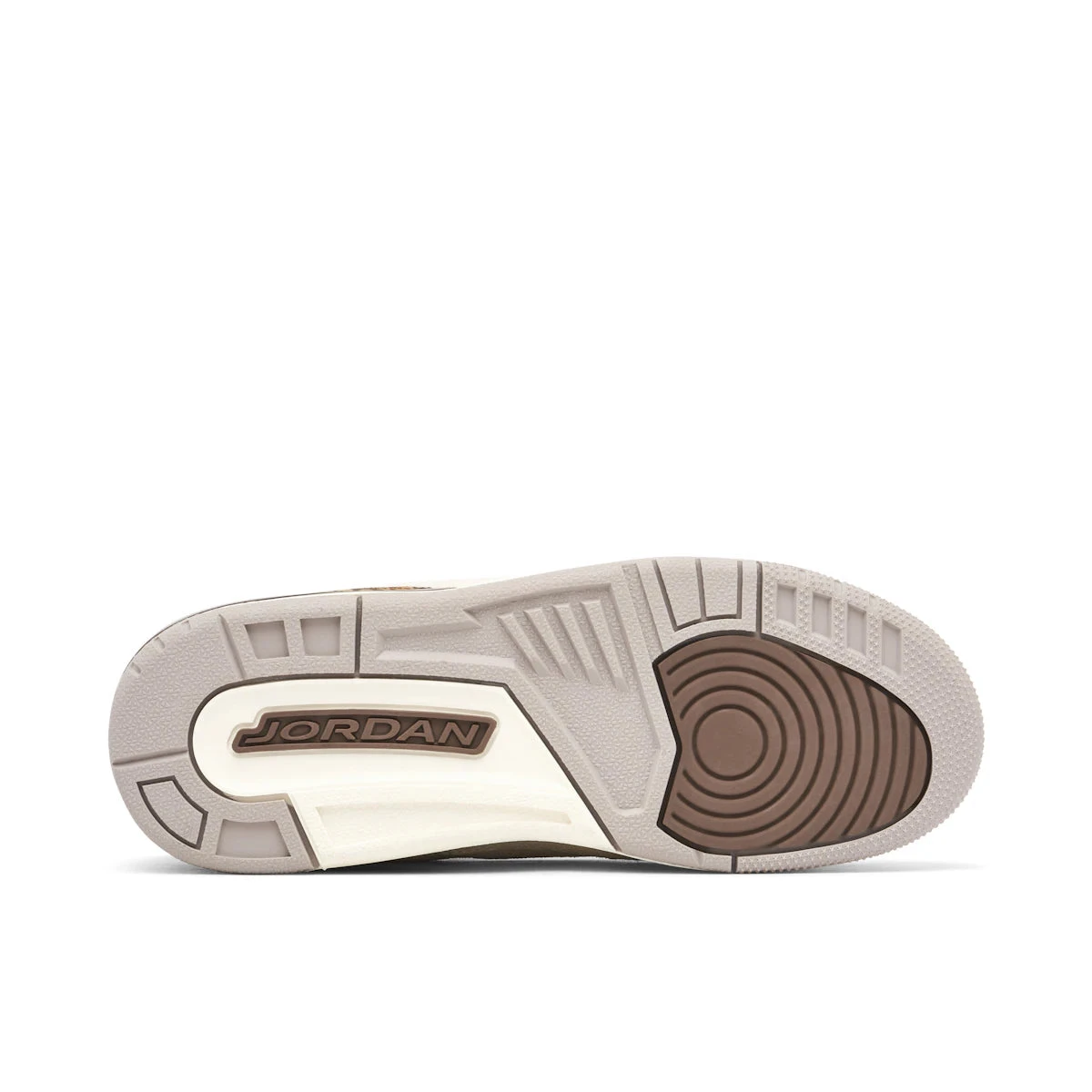 The Jordan 3 Retro Palomino is a highly anticipated release within the Jordan Line, showcasing the iconic silhouette that has become synonymous with the brand. This sneaker features a variety of eye-catching details that have made the Jordan 3 a fan favorite over the years. One of the most significant design elements is the elephant print that adorns the overlaying panels on the upper. In this particular colorway, the print is showcased in a neutral brown tone, adding a touch of texture and visual interest to the shoe.