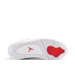 Part of the highly anticipated 2020 Air Jordan 4 Metallic Pack, the Jordan 4 Retro Metallic Red is a must-have for sneaker enthusiasts and Jordan fans alike. This iconic silhouette is given a fresh update with a clean white leather and mesh upper, providing a sleek and classic look. The metallic red accents on the AJ4 eyestays, Jumpman logo, tongue liner, and inside the Air unit add a bold and eye-catching touch to the overall design.