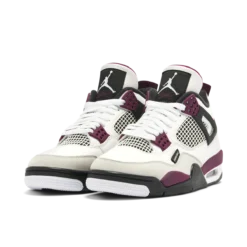 The Jordan 4 Retro PSG Paris Saint-Germain strays away from the club’s traditional colors, offering a fresh and modern look. The upper is crafted with a combination of white and grey, creating a clean and versatile base. Black and bordeaux accents add depth and contrast, making this sneaker stand out from the crowd.