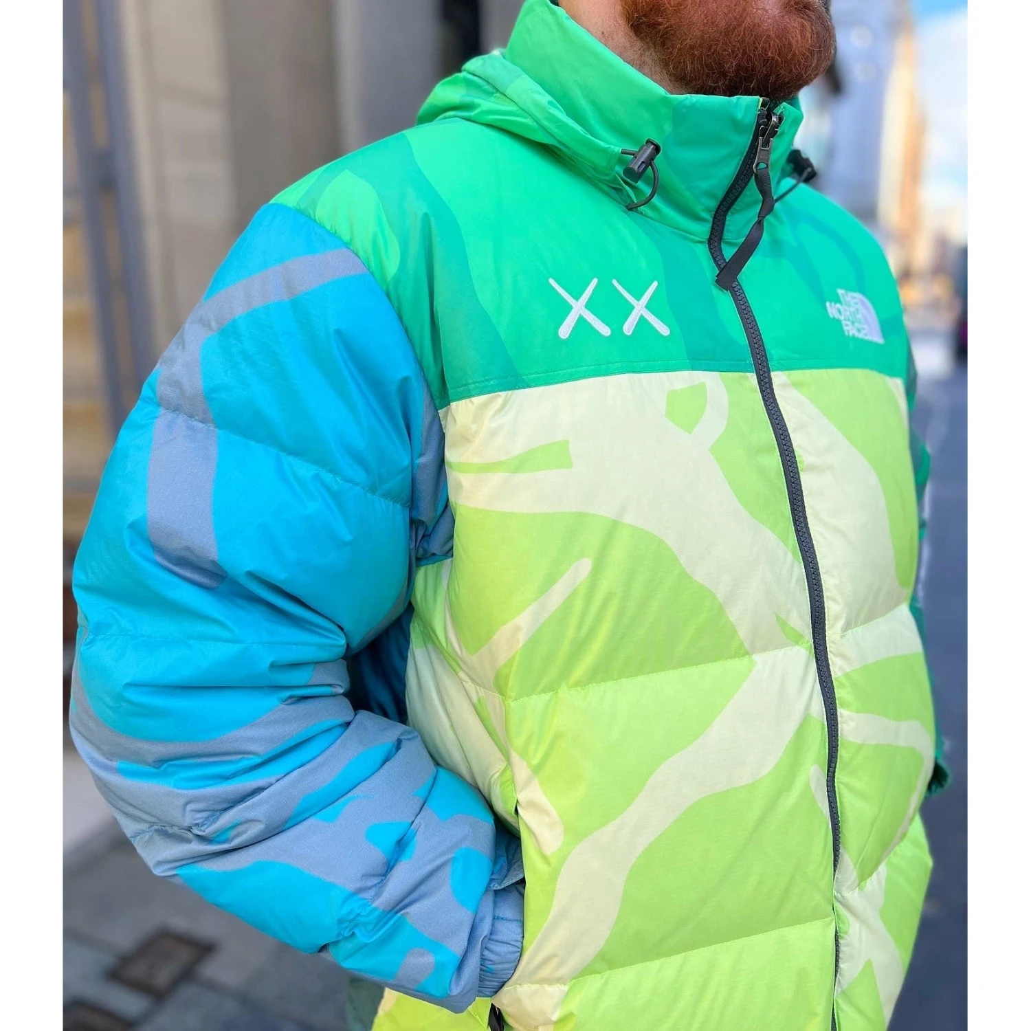 Introducing the highly anticipated collaboration between KAWS and The North Face, the Retro 1996 Nuptse Jacket in Safety Green. This limited edition jacket combines the iconic style of KAWS with the functional design of The North Face to create a must-have piece for any fashion enthusiast. The jacket features a bold Safety Green colorway, making a statement wherever you go. The Nuptse print adds a unique touch, showcasing the iconic KAWS artwork that has captivated audiences worldwide. Crafted with premium materials, this jacket offers both style and durability. The Retro 1996 Nuptse Jacket is designed to keep you warm and protected in any weather conditions, with its insulated construction and water-resistant finish. It features a full zip closure, adjustable hood, and multiple pockets for added convenience. Whether you’re hitting the streets or exploring the great outdoors, this jacket is sure to turn heads and elevate your style. Don’t miss out on this exclusive collaboration between KAWS and The North Face – get your Retro 1996 Nuptse Jacket in Safety Green today.