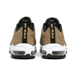 Introducing the Nike Air Max 97 LX Swarovski Gold, a limited edition sneaker that exudes elegance and royalty. With its signature Crystal Fabric from Swarovski, this shoe is a true showstopper. The metallic gold colorway from Nike perfectly complements the shimmering Swarovski fabric, creating a truly luxurious look. The wavy shape of the Air Max 97 only enhances the glimmer and adds a touch of sophistication. Whether you’re attending a special event or simply want to make a statement, these sneakers are the perfect choice. The attention to detail is impeccable, with the Swarovski crystals catching the light and creating a dazzling effect. Not only do these sneakers look stunning, but they also provide the comfort and support you expect from Nike. With its iconic Air Max cushioning and durable construction, you can confidently wear these sneakers all day long. Elevate your style with the Nike Air Max 97 LX Swarovski Gold and shine bright wherever you go.