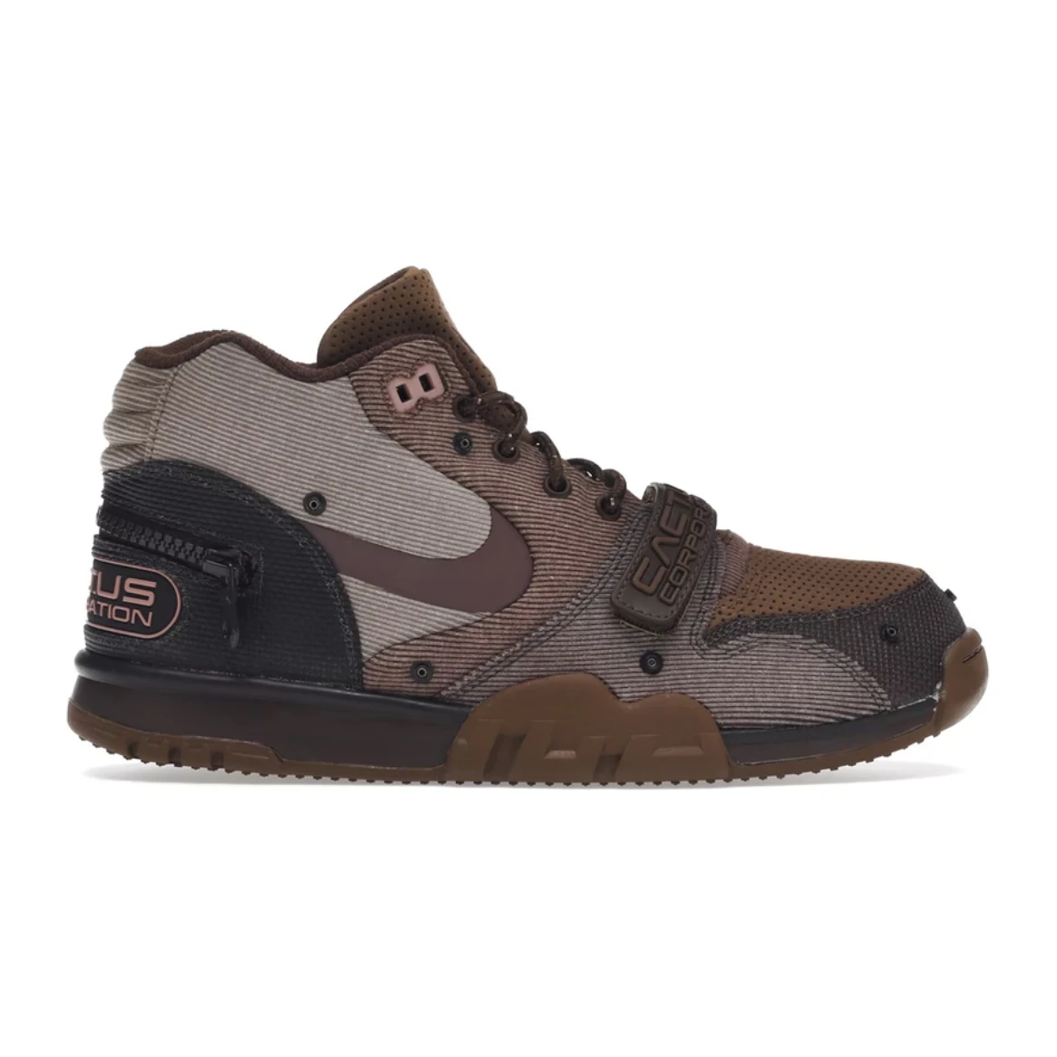 Releasing in 2022 as a duo, the Nike Air Trainer 1 SP Travis Scott saw two colourways come to light, the “Wheat” and “Grey Haze”, both boasting the same details and signature effects. The reverse swoosh appears on the inner of the shoe, whilst a strap featuring the words “CACTUS CORPORATION” wraps across the upper and also appears on the heel. The old-school basketball silhouette boasts co-branding and is finished off with a unique set of removable shrouds on each shoe, which can be unfastened and removed to style however the wearer likes.
