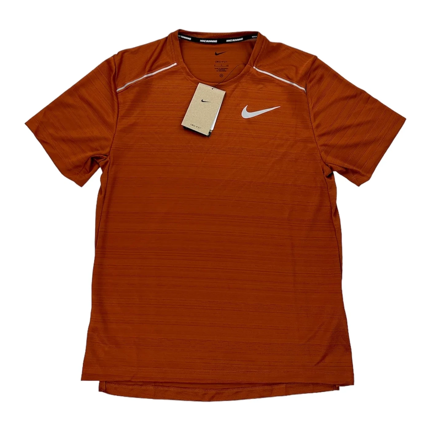 Introducing the Nike Dri-FIT 1.0 Miler Running T-Shirt in Dark Russet, the ultimate performance shirt for all your running needs. Crafted with Nike’s innovative Dri-FIT technology, this shirt keeps you dry and comfortable throughout your workout by wicking away sweat from your skin. The strategic placement of mesh panels also enhances ventilation, keeping you cool even during the most intense runs. Made from a lightweight blend of polyester and spandex, this shirt offers superior flexibility and a soft, comfortable feel against your skin.