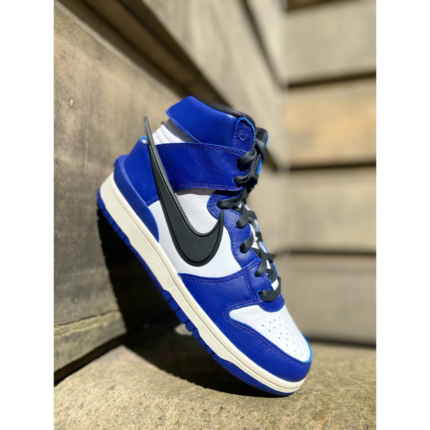 Introducing the Nike Dunk High AMBUSH Deep Royal, a collaboration between Nike and AMBUSH founder, Yoon Ahn. This highly anticipated sneaker draws inspiration from Japanese vehicle culture, with a design that captures the essence of movement. The standout feature of this iteration is the elongated swoosh, which gives the shoe a dynamic and sleek look. Made with premium materials, the Dunk High AMBUSH Deep Royal showcases a deep royal blue upper, complemented by white, pale ivory, and black accents. The combination of colors creates a bold and eye-catching aesthetic, perfect for those who want to make a statement with their footwear. The high-top silhouette offers ankle support and stability, making it ideal for both casual wear and skateboarding. With its unique design and attention to detail, the Nike Dunk High AMBUSH Deep Royal is a must-have for sneaker enthusiasts and fashion-forward individuals alike.