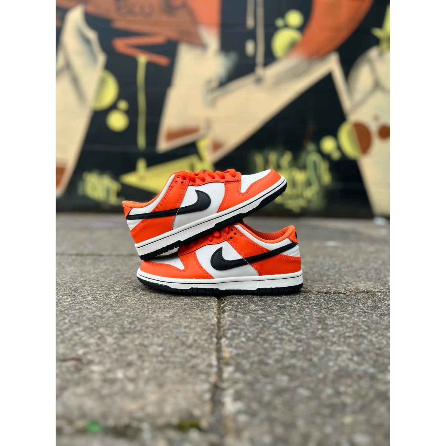 Get ready for spooky season with the Nike Dunk Low Halloween (GS) (2022). These themed kicks are the perfect way to celebrate and add a touch of Halloween spirit to your outfit. The shoes feature a vibrant orange leather upper that instantly catches the eye. It is complemented by white leather on the midfoot and toebox, creating a striking contrast. The black swoosh and outsole tie in with the pumpkin Halloween aesthetic, adding a touch of darkness to the design. The combination of colors creates a bold and festive look that is sure to turn heads. Whether you’re trick-or-treating or attending a Halloween party, these Dunks will be the perfect addition to your costume or casual attire. Don’t miss out on this limited edition release and get ready to embrace the Halloween spirit in style.