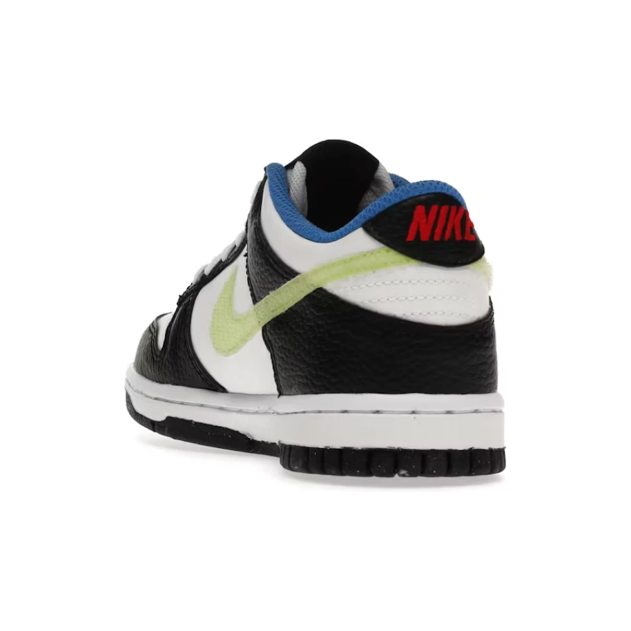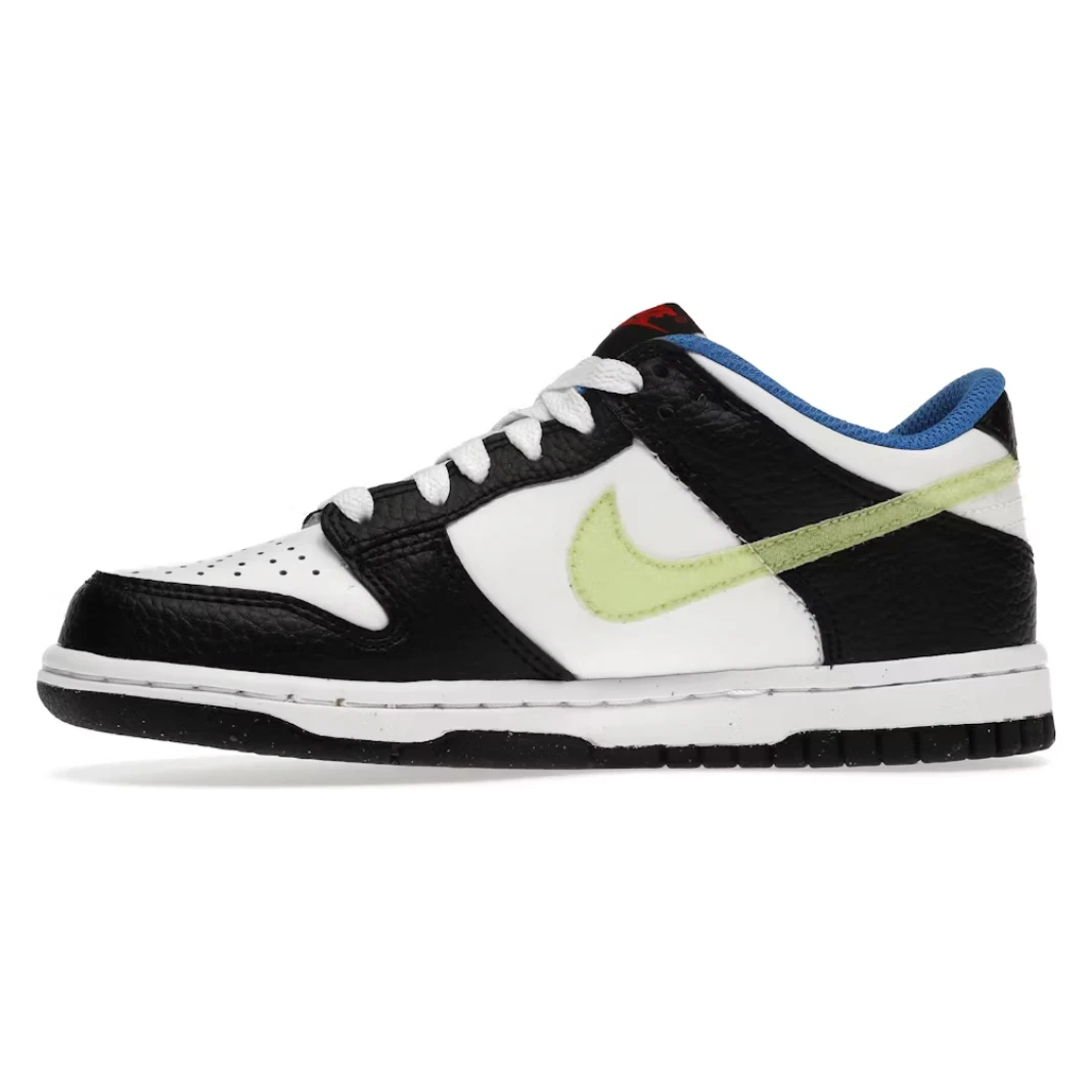 Introducing the Nike Dunk Low Signal Blue Lemon Twist, a sneaker that combines classic style with vibrant accents for a bold and eye-catching look. This iteration of the Dunk Low features a white leather base with black tumbled leather overlays, creating a clean and versatile foundation. But it’s the vibrant accents that truly set this shoe apart. The swoosh stands out in a neon green color, adding a pop of brightness against the neutral background. On the heel, you’ll find Nike branding in a fiery habanero red, adding a touch of fiery energy to the design. And to complete the look, the sock liner comes in a bright signal blue, adding another layer of color and visual interest. With its unique combination of colors and attention-grabbing details, the Nike Dunk Low Signal Blue Lemon Twist is sure to turn heads and make a statement wherever you go. Whether you’re hitting the streets or stepping onto the court, this sneaker is a must-have for those who want to stand out from the crowd.