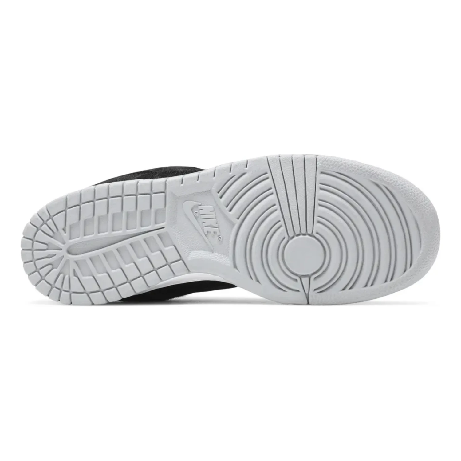 From a collaboration between Nike and Japanese brand Medicom, the SB Dunk Low Be@rbrick sneakers are covered in a black faux fur material, with white accents and sail faux fur on the heel tab.