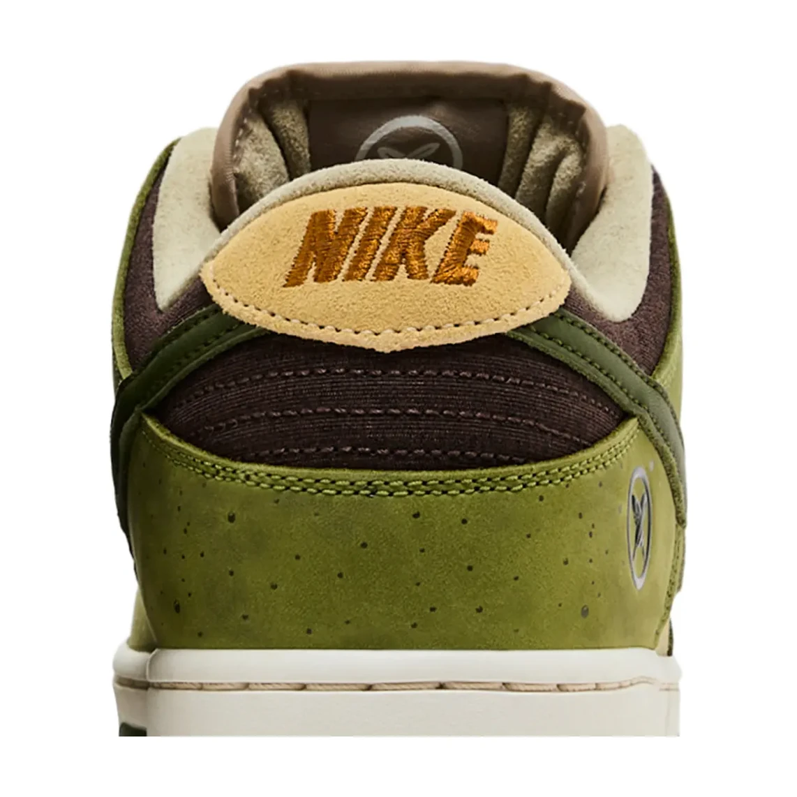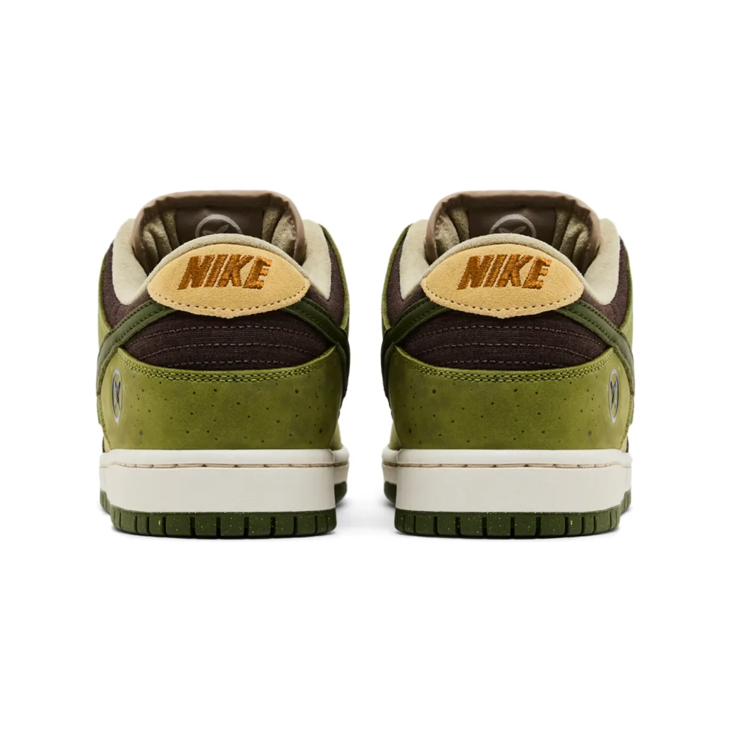 The upper features a mix of soft Light Khaki suede and deep green leather overlays in Asparagus and Legion Green, echoing the earthy tones of its namesake. Speckled accents and Yuto’s family crest on the heel add personal touches, while Zoom Air cushioning and a padded tongue bring performance comfort for skate sessions or everyday wear.