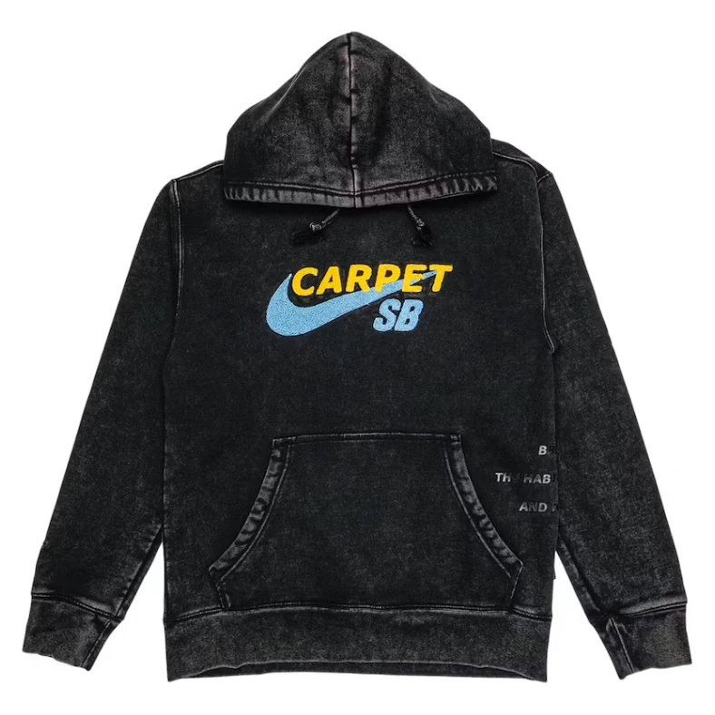 Released in the Spring/Summer 2021 collection, the Nike SB x Carpet Company Hoodie in black is a testament to the power of collaboration between the skateboarding giant and the Baltimore-based brand known for its unique approach to streetwear. This hoodie, bearing the style code DA4310-010, was launched on March 12, 2021, and quickly became a sought-after piece for fans of both entities. Crafted with the skateboarder in mind, this hoodie doesn’t just promise warmth and comfort; it delivers a statement of style and individuality.