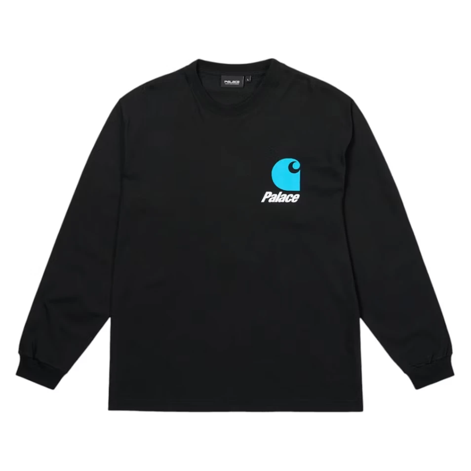 The Palace Carhartt WIP Logo Longsleeve in black is a collaborative long-sleeve tee featuring minimalist co-branding from Palace and Carhartt WIP. Made from 100% premium cotton, it combines streetwear aesthetics with workwear durability. Released in FW24, it’s a limited-edition piece ideal for casual wear.