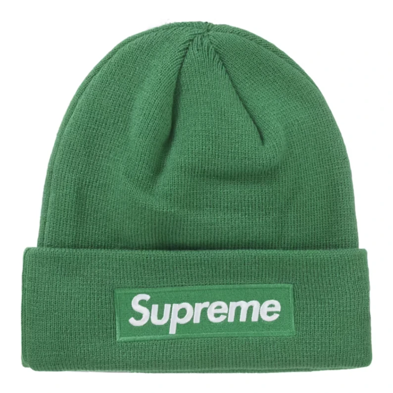 Stay cozy and stylish with the Supreme New Era Box Logo Beanie in Green. Crafted from soft knit fabric, it features the iconic embroidered Supreme box logo front and center. A must-have accessory for the FW24 season, perfect for adding a bold pop of color to your winter wardrobe.