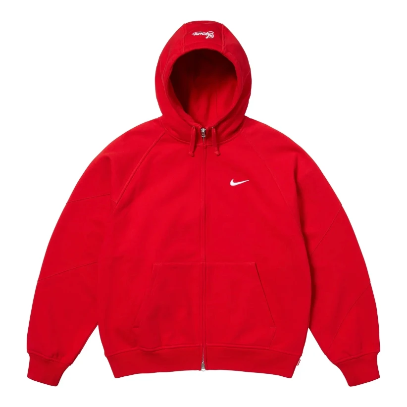 Bold and unmistakable. This red zip-up hoodie from Supreme and Nike brings statement colour with premium comfort. Featuring subtle co-branded details and a clean athletic fit, it’s a standout piece with everyday wearability.